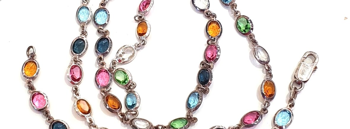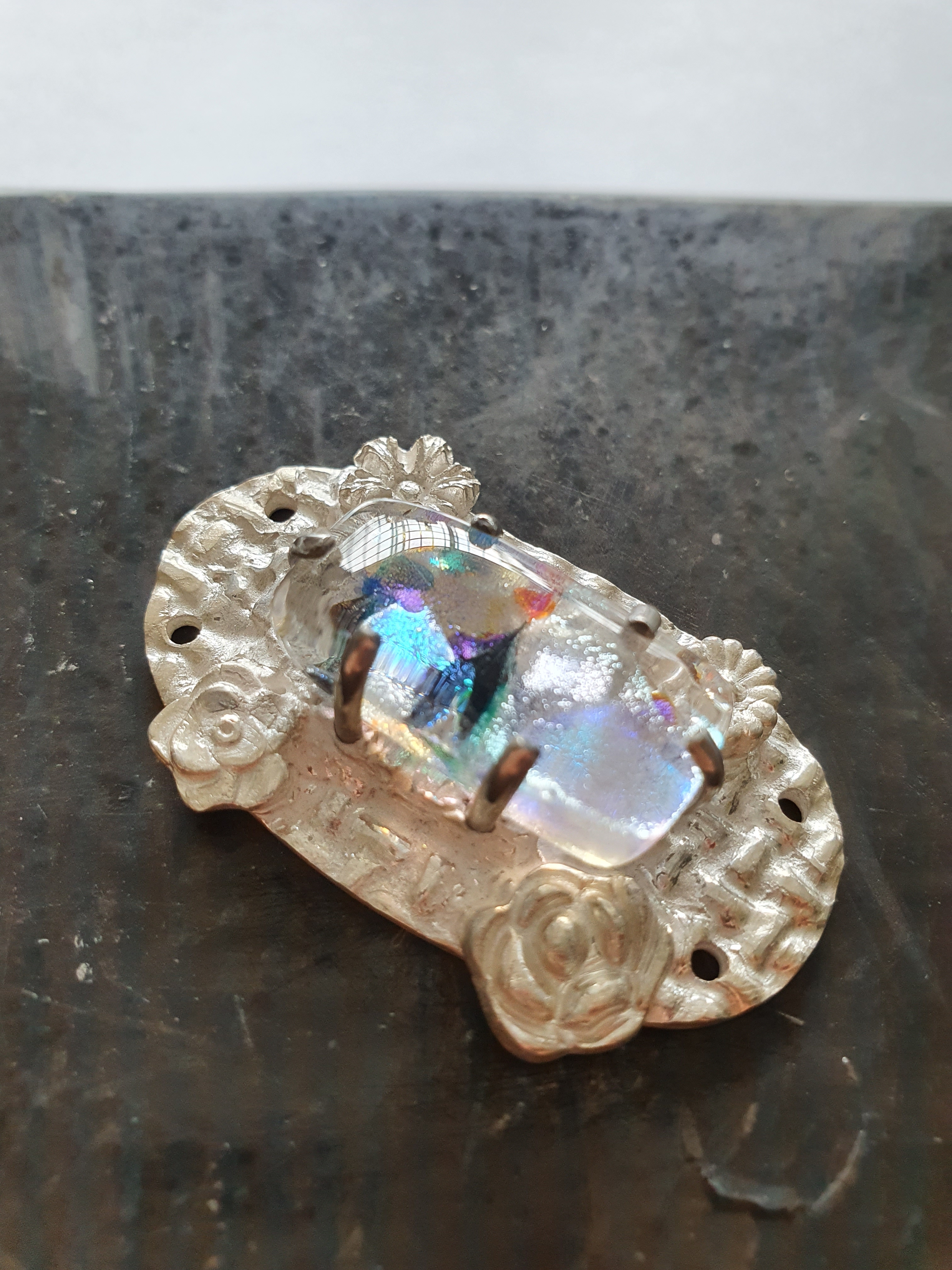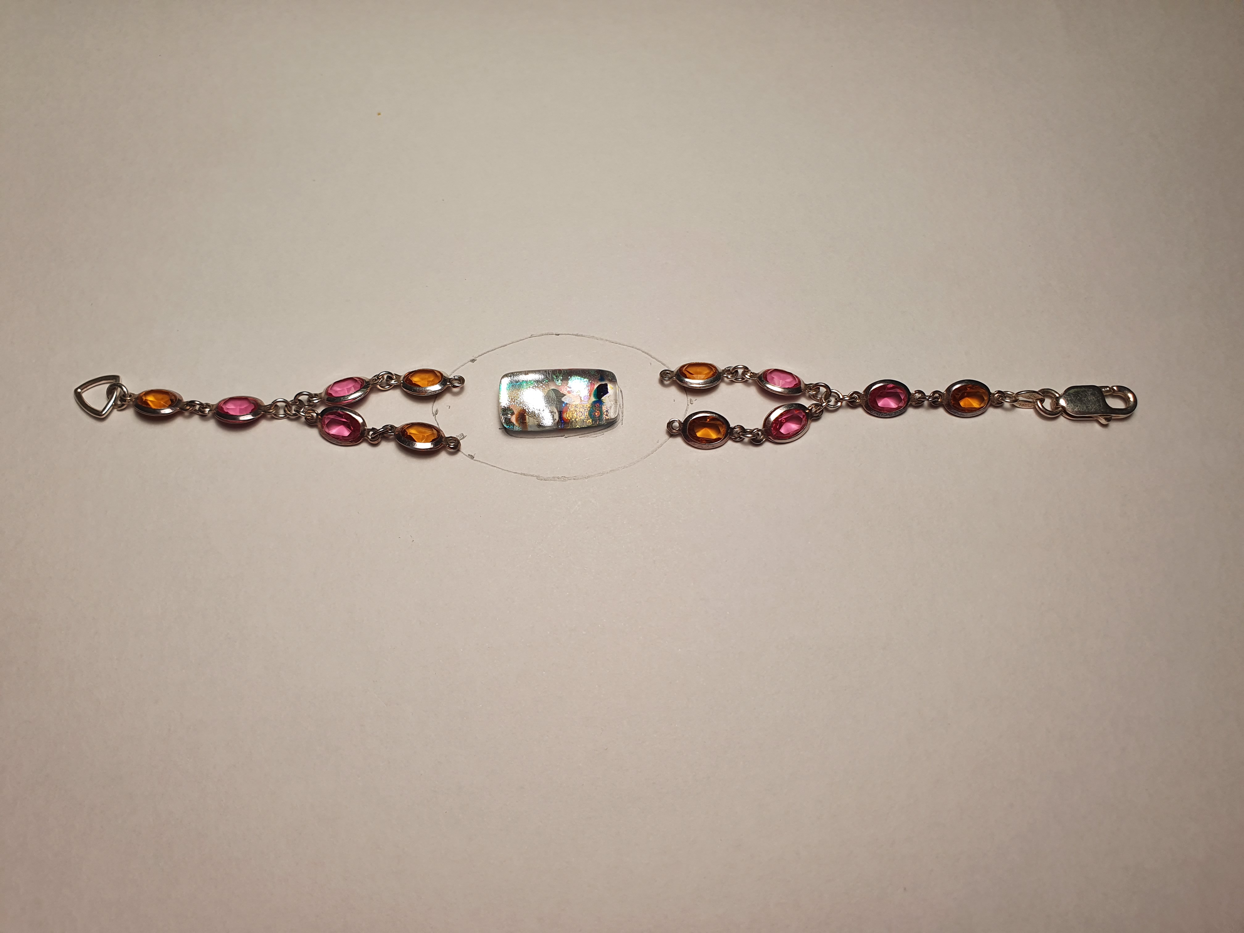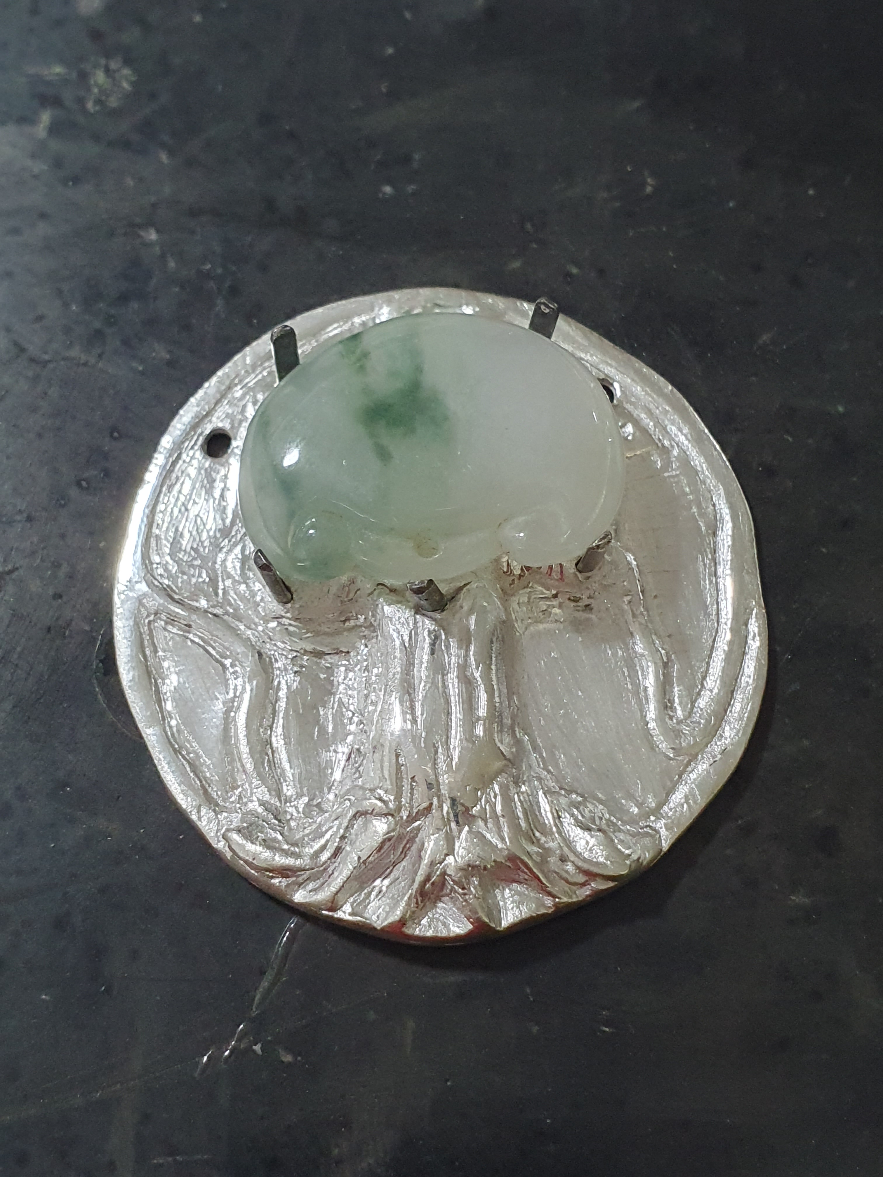 | List of materials used | Upcycled/Recycled materials used: 1. Clear, green and blue stones from old necklace and bracelet 2. Jump rings and clasp from old necklace and bracelet 3. Recycled silver bits and leftovers from past Art Clay Silver projects 4. Jade pendant from old necklace New additional materials used: 1. Art Clay Silver (recycled silver) 2. UV resin |